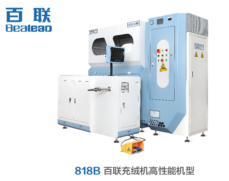 百聯(lián)展品:818B百聯(lián)充絨機高性能機型;402B百聯(lián)全自動稱重充棉機