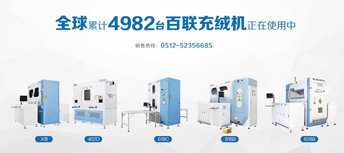 百聯(lián)展品:X型模塊化自動(dòng)充絨機(jī)(選配封口機(jī))、 402D全自動(dòng)絨棉一體機(jī)