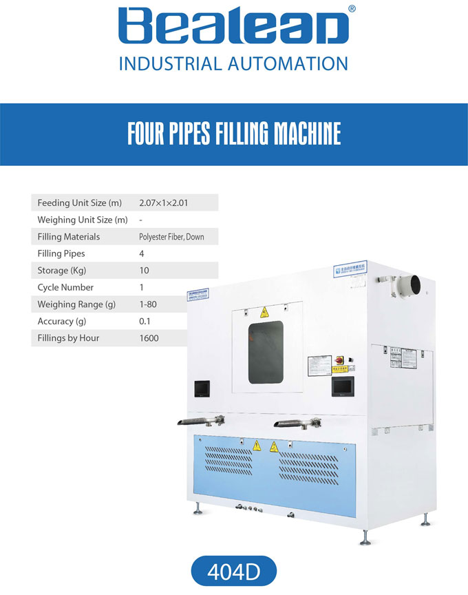 404D全自動(dòng)稱(chēng)重棉絨一體機(jī),一臺(tái)機(jī)器同時(shí)滿足可充棉,珍珠棉,羽絨三種應(yīng)用需求。