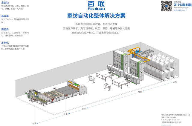 百聯(lián)作為提出家紡整體解決方案的公司,將在本屆展覽會(huì)上重點(diǎn)強(qiáng)調(diào)“定制化”,從填充、刷毛、檢針折疊到壓縮包裝入袋等環(huán)節(jié),針對不同的客戶需求提供家紡領(lǐng)域?qū)I(yè)化的定制產(chǎn)品與服務(wù)。