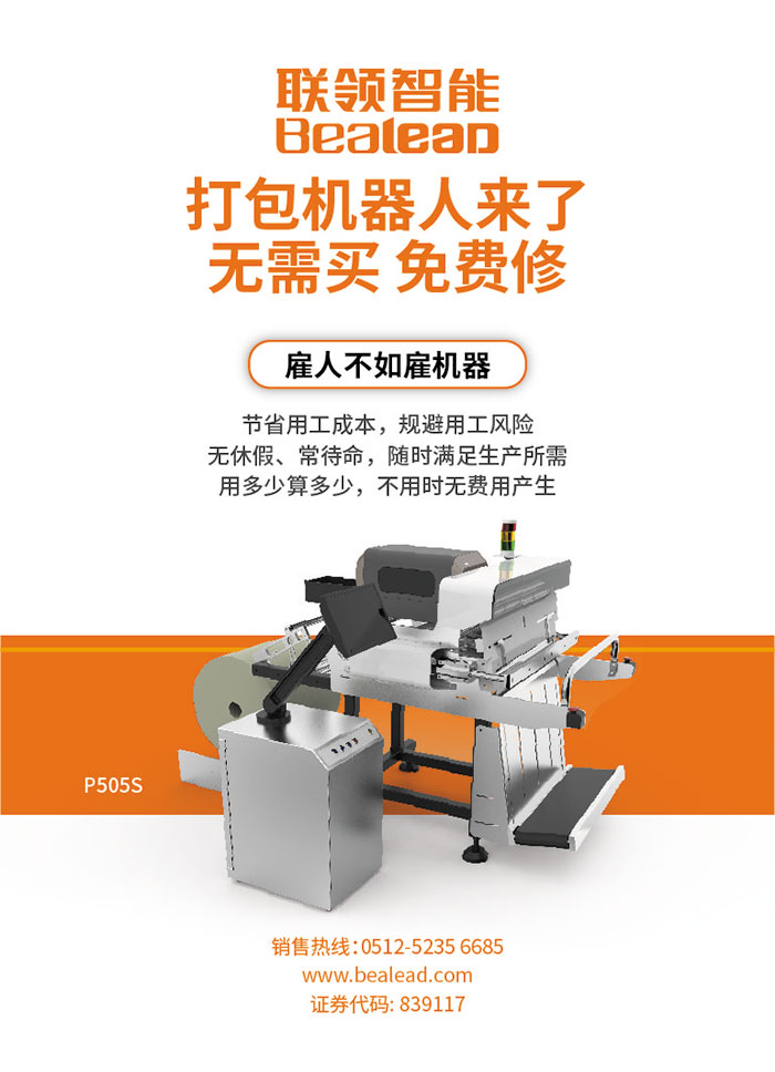 百聯(lián)還將展示全新的P505S型發(fā)包機(jī),它不僅具有智能打印、高效省工、優(yōu)質(zhì)體驗(yàn)、節(jié)能環(huán)保功能,還在商業(yè)模式上有所創(chuàng)新——用戶(hù)無(wú)需購(gòu)買(mǎi)即可享有“打包機(jī)器人”的使用權(quán)。