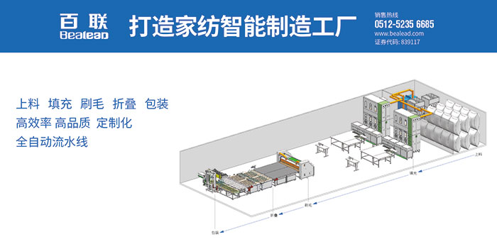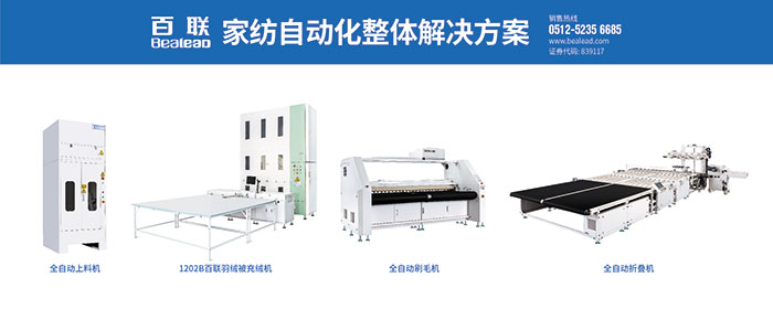 參展期間,百聯(lián)還將重磅推出“家紡自動(dòng)化整體解決方案”這是百聯(lián)多年自主研發(fā)經(jīng)驗(yàn)積累、緊貼家紡領(lǐng)域客戶(hù)需求而提供的專(zhuān)業(yè)自動(dòng)高效化整體解決方案,可以滿(mǎn)足羽絨被、枕芯、靠墊、睡袋等多種生產(chǎn)需求。
