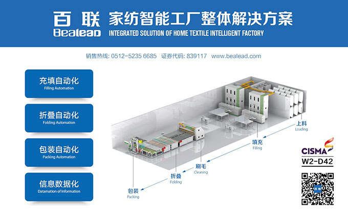 據(jù)悉,在CISMA2017展會(huì)上,已實(shí)現(xiàn)了充填自動(dòng)化、折疊自動(dòng)化、包裝自動(dòng)化及信息數(shù)據(jù)化的百聯(lián)“家紡智能工廠整體解決方案”成功入圍展會(huì)主辦方組織的智能產(chǎn)品評(píng)選,并且將由公司董事長(zhǎng)錢衛(wèi)波先生在展會(huì)現(xiàn)場(chǎng)向觀眾分享百聯(lián)家紡智能工廠的“奧秘”(時(shí)間:9月27日下午3:00-4:00;地點(diǎn):E1館外二樓M16會(huì)議室)。