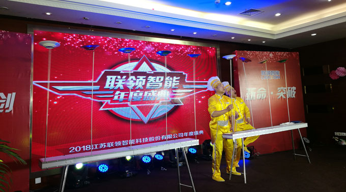 在當(dāng)天的盛典上,舞蹈、魔術(shù)、雜技……輪番上場(chǎng),聯(lián)領(lǐng)智能的“家人”們歡歌笑語(yǔ),即使是出差在外的同事,也能通過(guò)即時(shí)視頻通訊與會(huì)場(chǎng)內(nèi)的同仁們一起分享這份快樂(lè)。更有公司各事業(yè)部總監(jiān)合唱的《真心英雄》將盛典氣氛推向高潮。