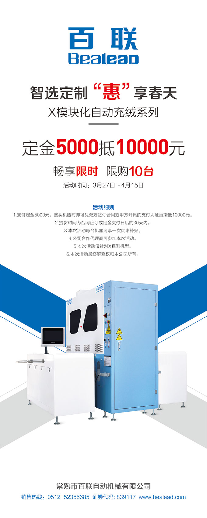 百聯(lián)專門推出了針對X模塊化自動充絨系列產品的限時優(yōu)惠購機方案,即每臺機器均可享受一次“定金5000抵10000元”的優(yōu)惠購機補貼。對此,現(xiàn)場反應熱烈。