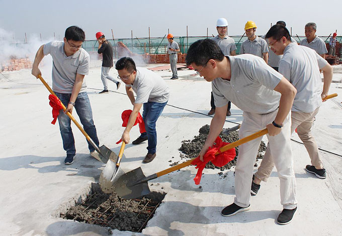 6月6日,常熟虞山高新技術(shù)產(chǎn)業(yè)開(kāi)發(fā)區(qū)內(nèi),隨著我們公司高層揮鏟填入最后一塊混凝土,百聯(lián)“新建智能裝備生產(chǎn)項(xiàng)目”基地建筑主體正式“合龍門(mén)”,順利實(shí)現(xiàn)結(jié)構(gòu)封頂!