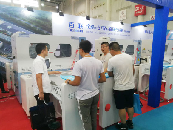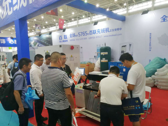 百聯(lián)一直重視參與以武漢為重點的華中紡織服裝產(chǎn)業(yè)轉(zhuǎn)型發(fā)展進程,以具有核心技術(shù)的纖維填充設(shè)備和高效的物流自動化解決方案為當(dāng)?shù)乜蛻籼峁┧璧漠a(chǎn)品與服務(wù)。在本次展會期間,百聯(lián)主要展示了4401、2601、全新X機型、402D雙口絨棉一體機等升級版的充絨或充棉類設(shè)備,并針對當(dāng)?shù)仉娚痰陌l(fā)展以及物流自動化的需要重點展示了505S型發(fā)貨包裝機。從現(xiàn)場反饋的情況看,這些產(chǎn)品滿足了當(dāng)?shù)赜脩籼岣呱a(chǎn)效率、促進生產(chǎn)升級的需求,受到了大家的積極關(guān)注。