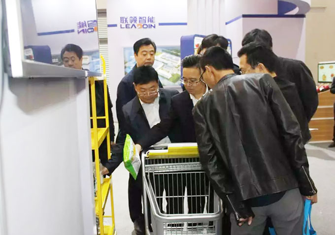 智能不止于此。聯(lián)領(lǐng)智能還展示了可定制尺寸的基于稱重傳感技術(shù)和大數(shù)據(jù)應(yīng)用技術(shù)開發(fā)的智能購物車。