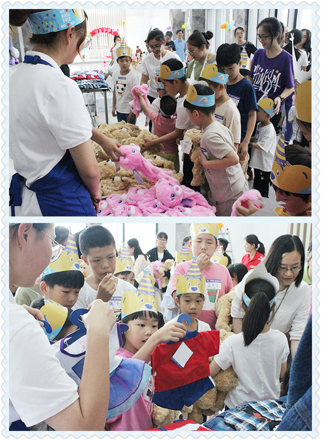 小朋友排隊(duì)領(lǐng)取玩偶皮膚和衣服