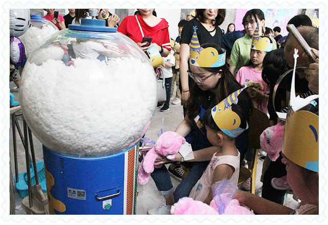 小朋友用爸爸媽媽設(shè)計(jì)生產(chǎn)的機(jī)器給玩偶充棉